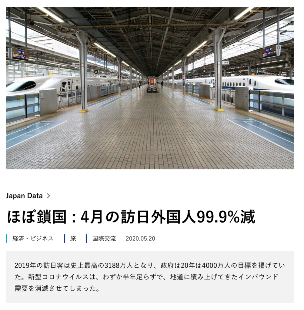 nippon.com『ほぼ鎖国 : 4月の訪日外国人99.9%減』より引用