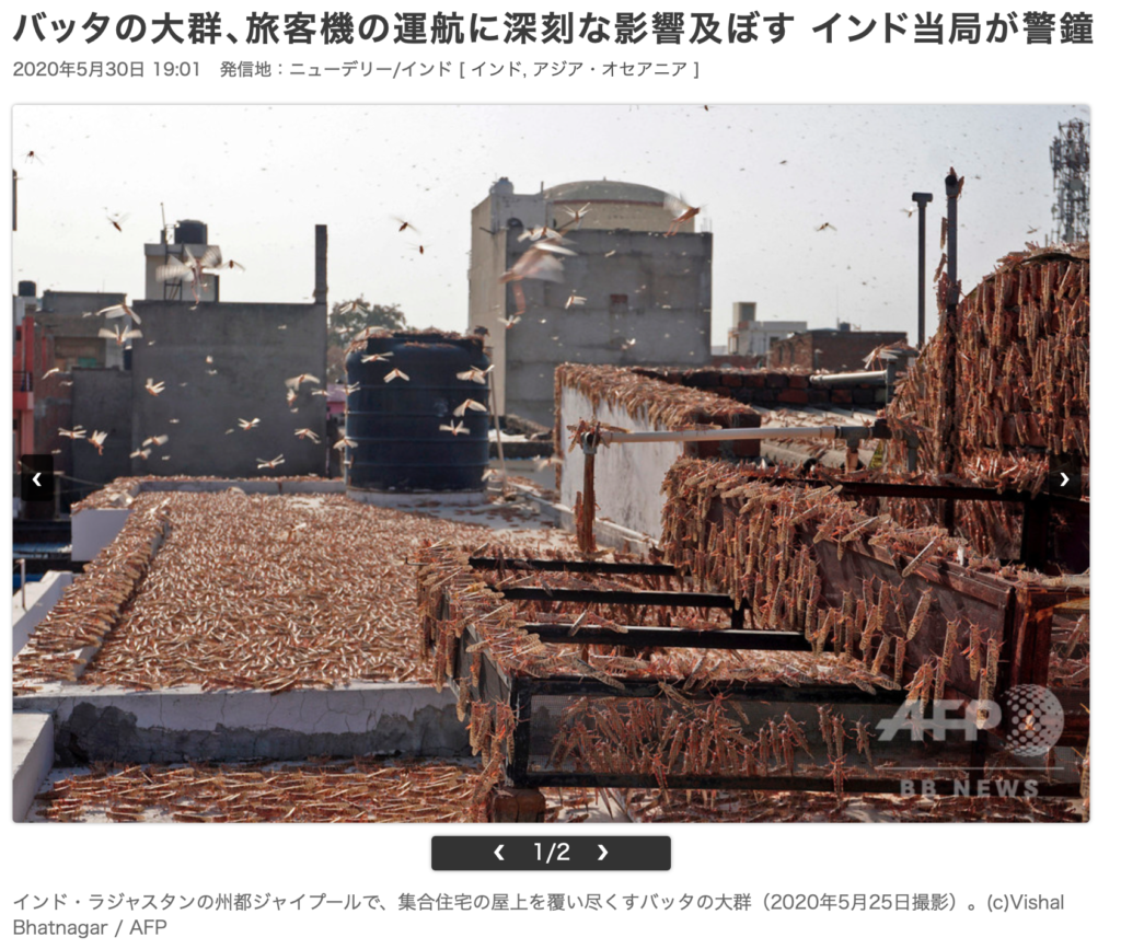 AFP BB NEWS『バッタの大群、旅客機の運航に深刻な影響及ぼす インド当局が警鐘』より引用