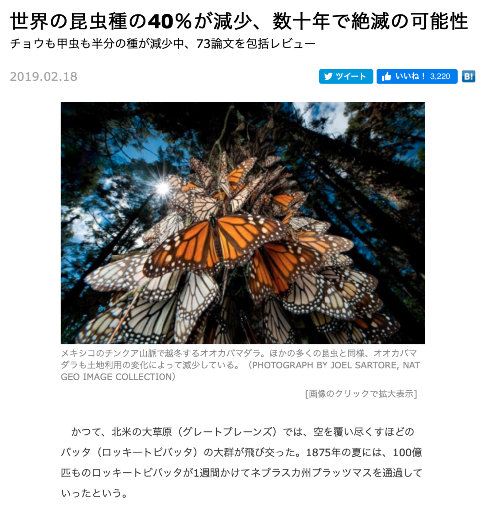 NATIONAL GEOGRAPHIC『世界の昆虫種の40%が減少、数十年で絶滅の可能性』より引用