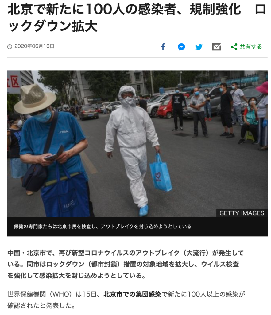 「第二波」で北京はロックダウン(都市封鎖)を拡大!?日本でもクラスター感染は止まっていない。