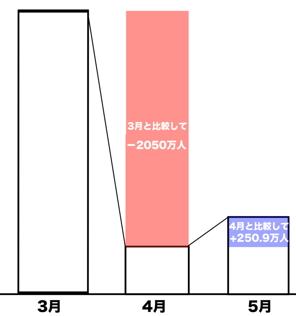 4月雇用統計では、非農業部門雇用者数の変化は−2050万人でした。