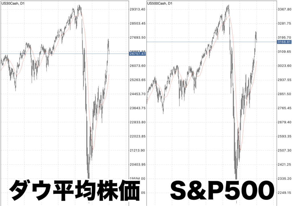 同じアメリカ株でも、ダウ平均株価とS&P500はまだ最高値更新してないじゃないですか。