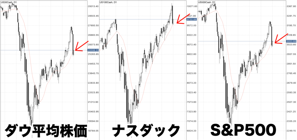 特にナスダックは連日高値更新で移動平均線から離れてたから、オーリーさんの手法が当てはまりそうですよね!