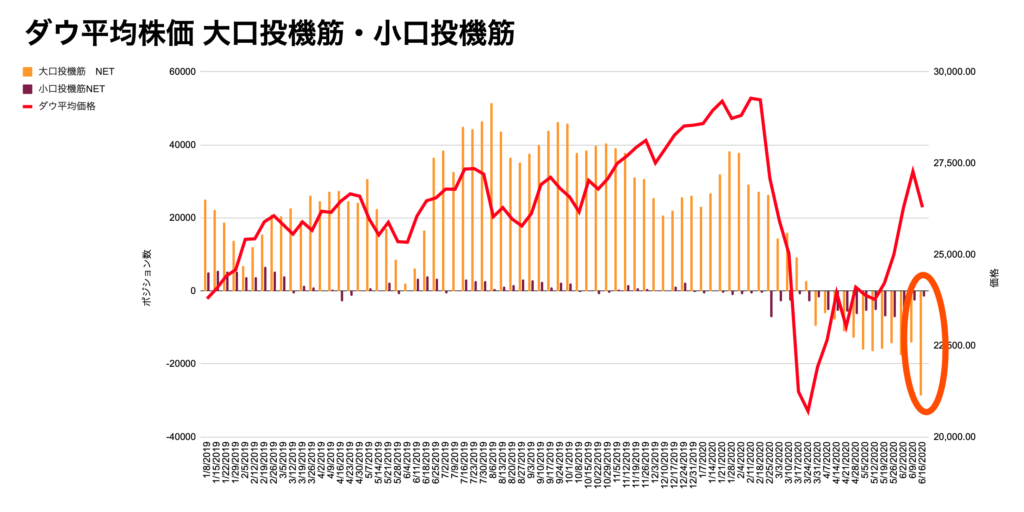 あ!ダウ平均株価は大口投機筋が一気に売り越してますね!