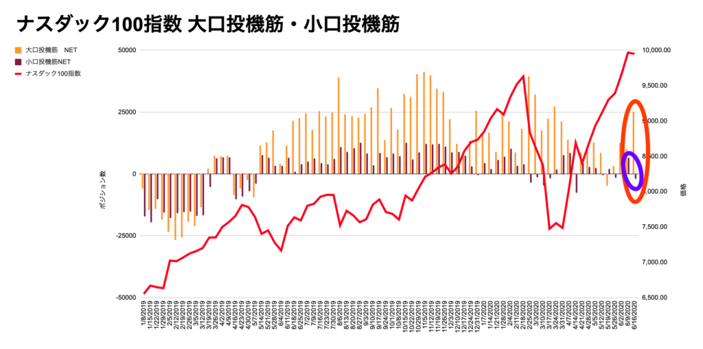 実は大口投機筋と小口投機筋が逆の動きをするとき、価格は大きく動く傾向があります。