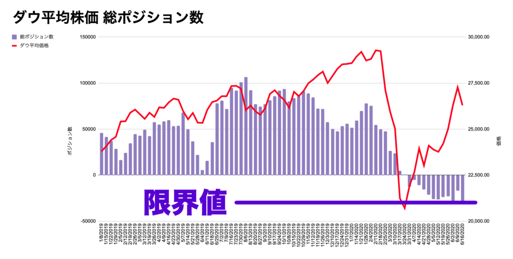 ダウ平均株価は大口投機筋が大きく売り越している!