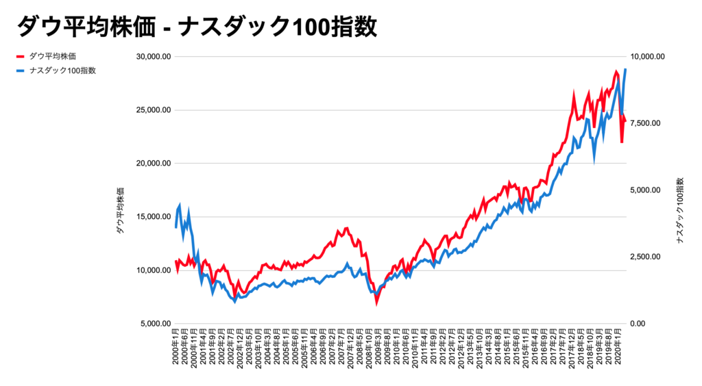 オーリーさん、ダウ平均株価とナスダックって同じアメリカ株だから連動するってことですよね?