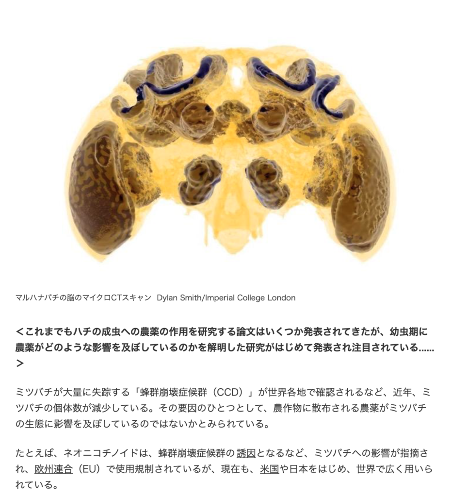 Newsweek『「農薬がハチの幼虫の脳に害をもたらす」幼虫期への影響を解明する初の研究結果』より引用