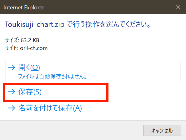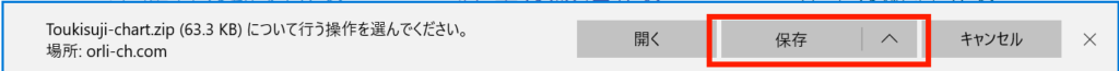 そのまま「保存」をクリックすれば「Toukisuji-chart.zip」がダウンロードフォルダに保存されます。