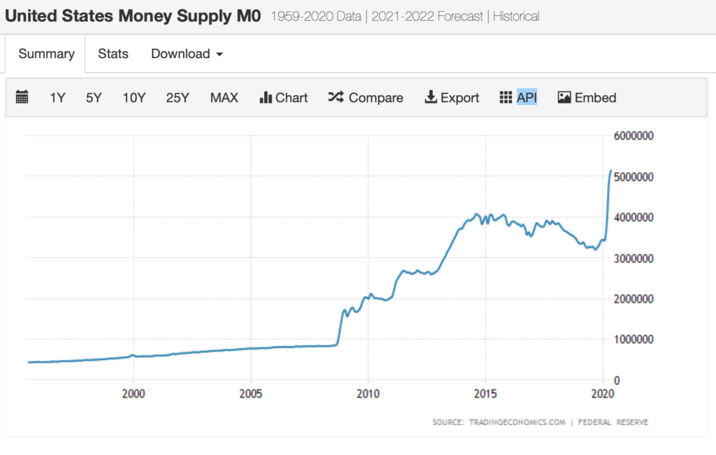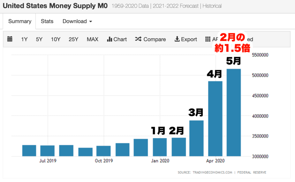 そしてドルが売られる要因としてもう一つに、ドルの供給量が短期間で増大していることが考えられます。