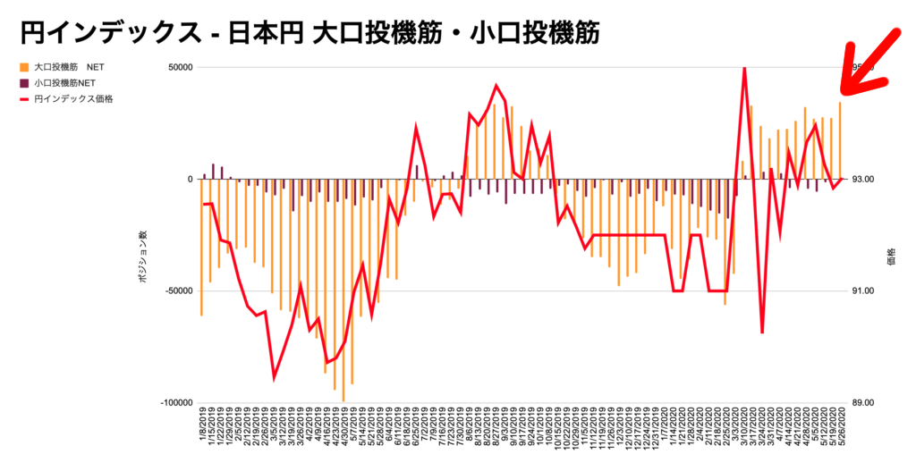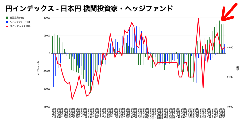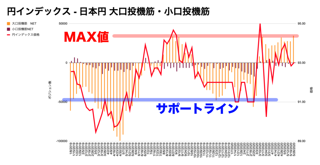 ここは以前から言っていた「円の大口筋・機関投資家の買いポジション量はMAX」につながってきます。