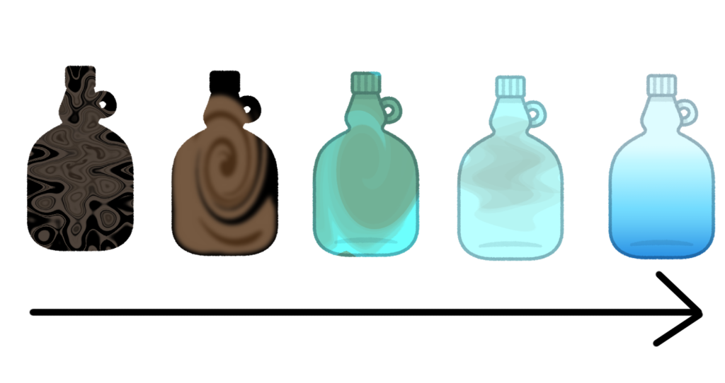FXで勝てない人も含めていつも「お金がない」とマイナスになっている人は、潜在意識をビンに例えると「濁りきった水で満たされている」感じになります。