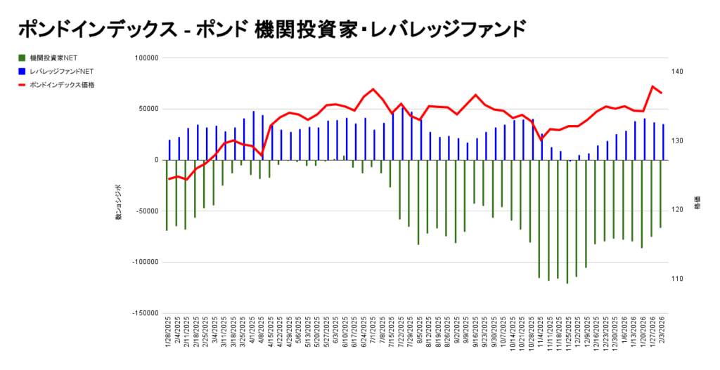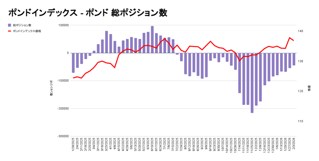 こちらがポンドインデックスと、ポンドのポジション量になります。