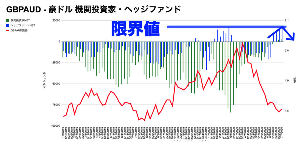 オーリーさん、こんにちは!この前「ポンド豪ドル(GBPAUD)が投機筋チャートから見て上昇する」と仰られてたじゃないですか?