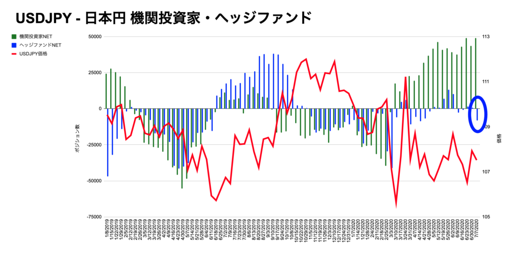投機筋ポジション量のデータは火曜日区切りなので、投機筋・機関投資家・レバレッジファンドは火曜日の終値を意識するという考え方です。