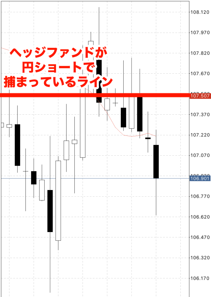 なのでレバレッジファンドが売りを仕掛けたということは、ドル円は上昇することで含み益が出るということです。