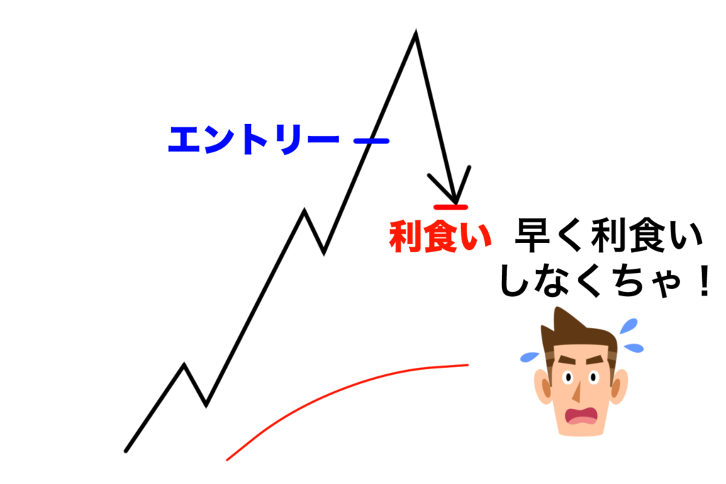 あと含み益をすぐに利食いする(※)のも、勝てない要因となりやすいです。