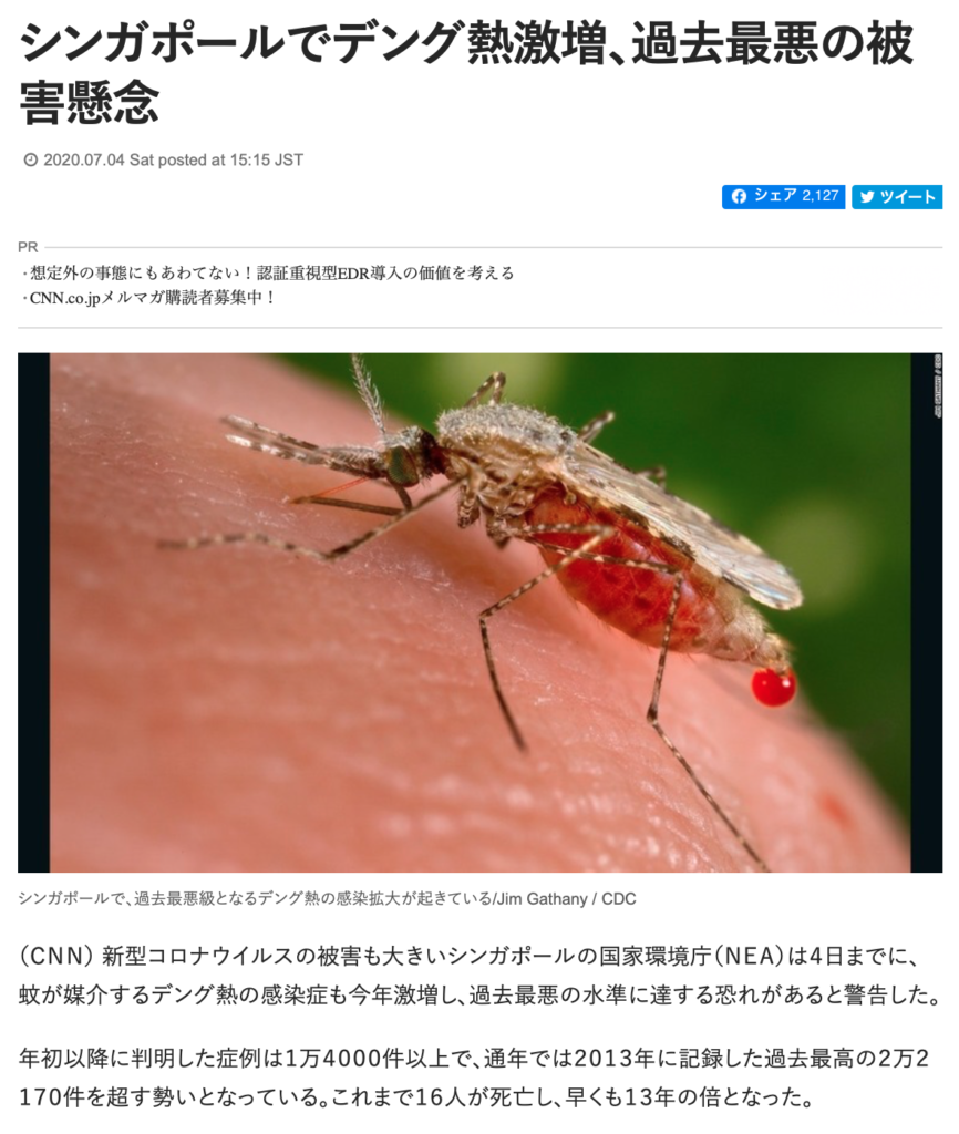CNN.co.jp『シンガポールでデング熱激増、過去最悪の被害懸念』より引用