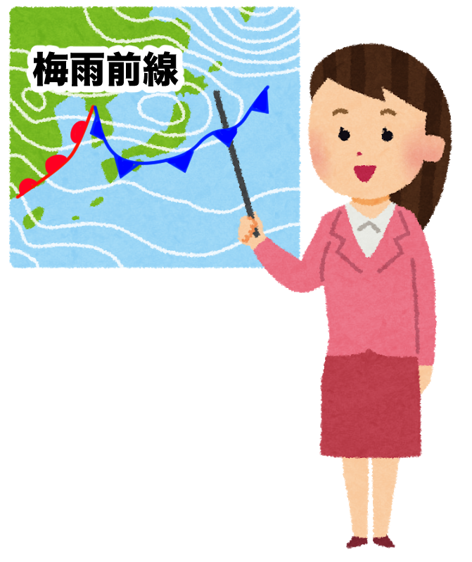 梅雨ときは日本列島全体に「梅雨前線」がかかることで、降水量が多くなります。