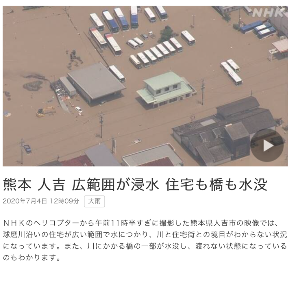 オーリーさん、こんにちは〜。この前熊本の豪雨で浸水被害がありましたが、梅雨の終盤の今ずっと大雨ですよね。