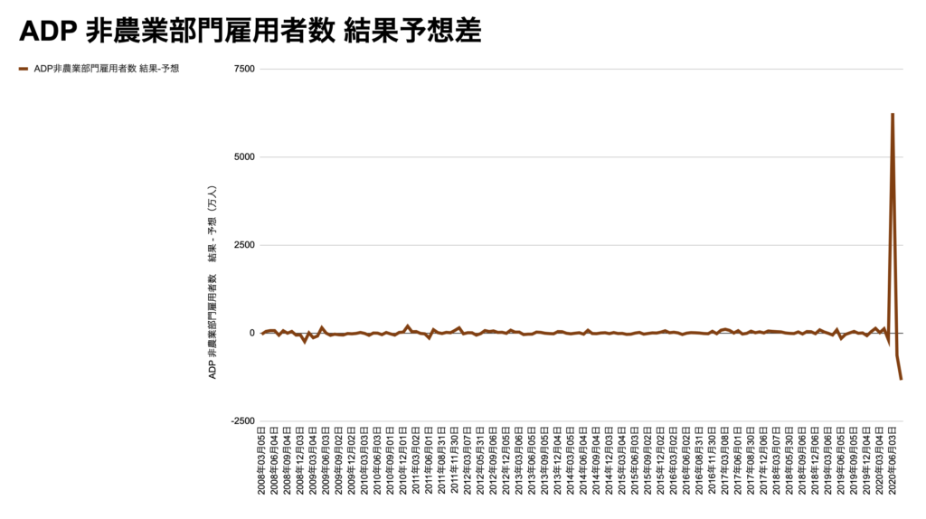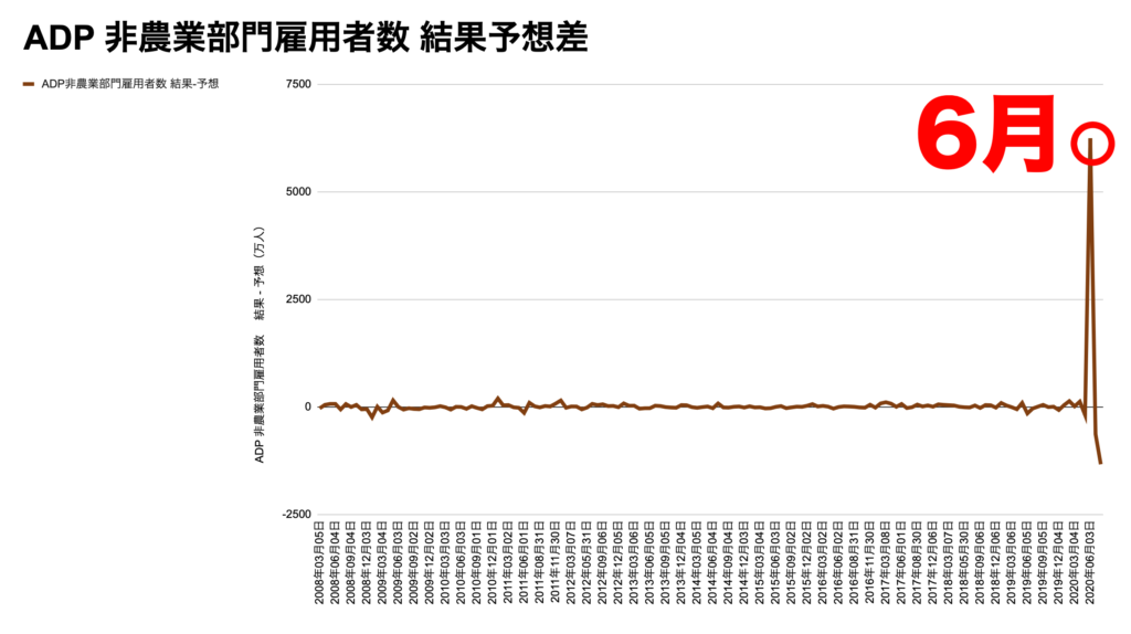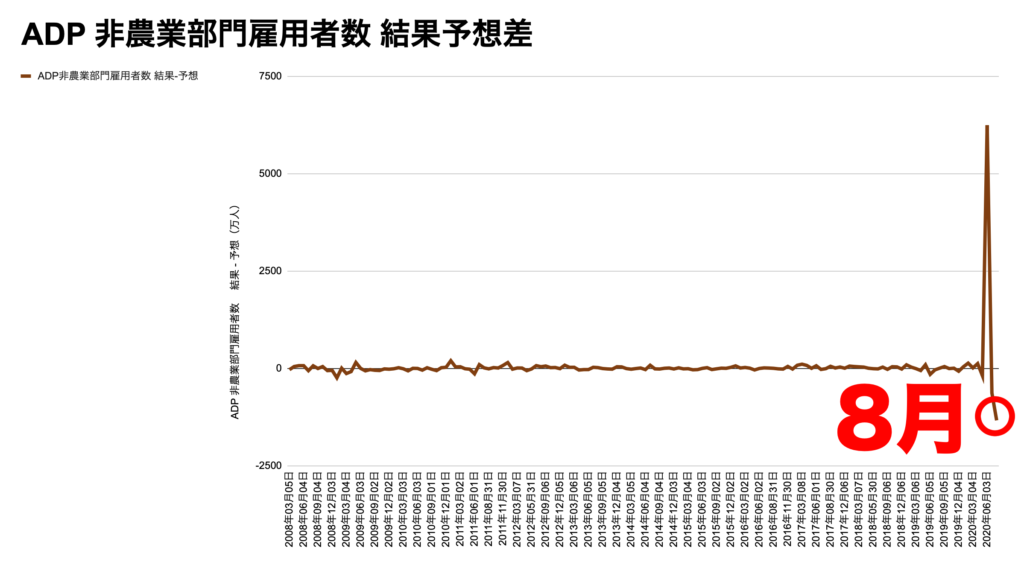 そうですね。なので先日発表のADP雇用統計の結果と予想の差が、12年間で史上最悪だったと見ることができます。