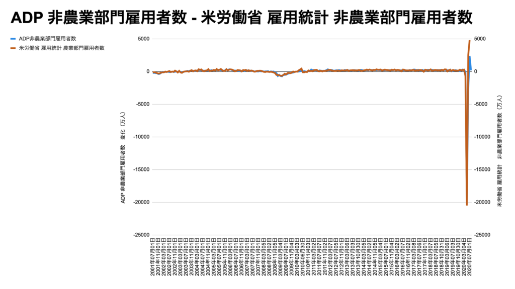 で、実際にADP社と労働省の雇用統計はどれぐらいデータは一致しているんでしょうか?