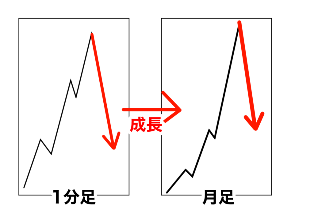 そうですね!そして月足の大きな転換でも、すべて1分足の転換から始まって成長するわけです。