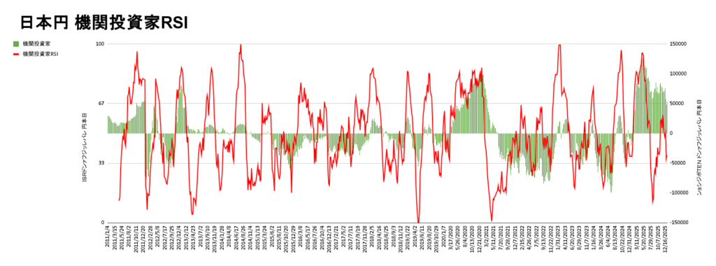 こちらが円のポジション量RSIになります。