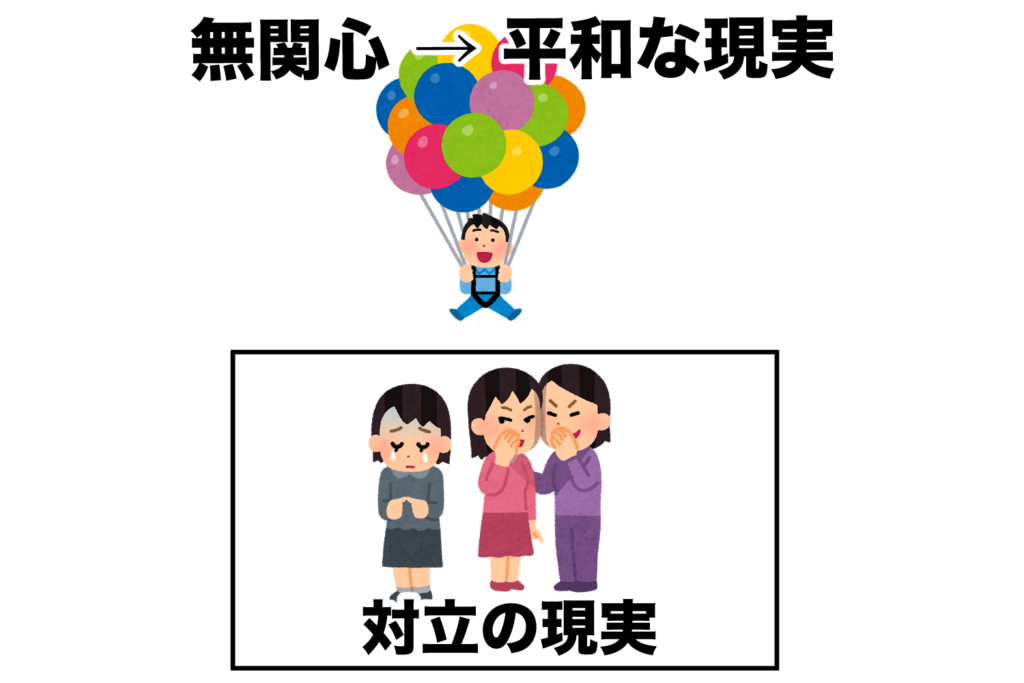 今回お話した◯◯警察の仕組みを理解した上で無関心になることで、「正義 vs 悪」といった対立の外側に行く現実を作れるということです。