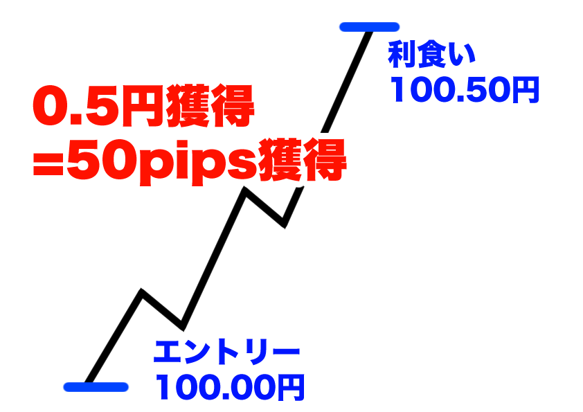 なのでFXで0.5円の値幅で勝つと「50pips獲得した」と表現できるわけです。