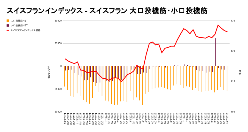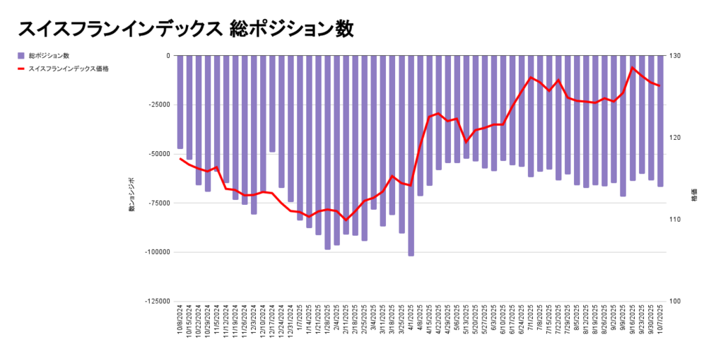 これを踏まえた上で、円・フランのポジション量を見てみましょう。