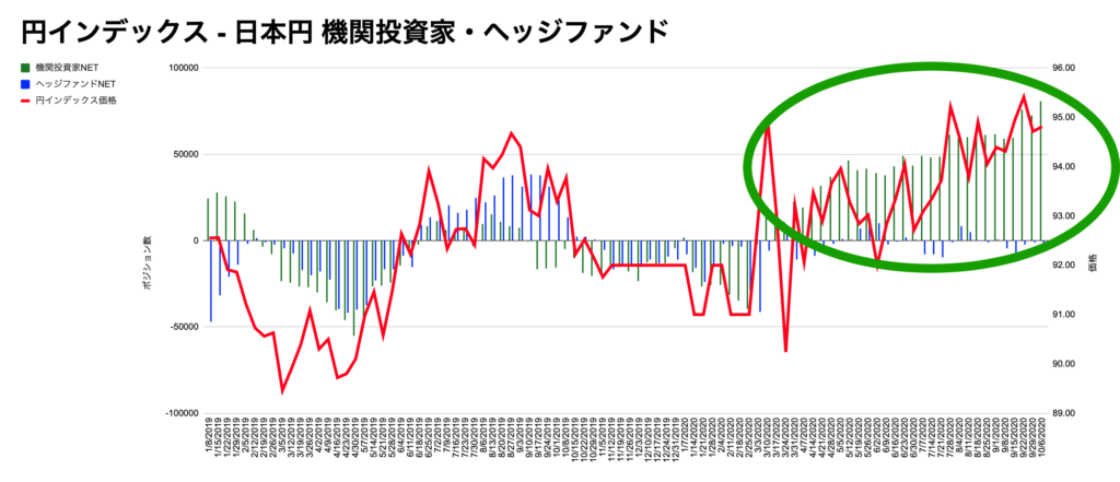 さらに円の投機筋チャートでも、機関投資家は買いポジション量がたまり過ぎています。