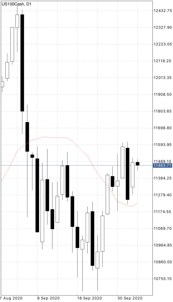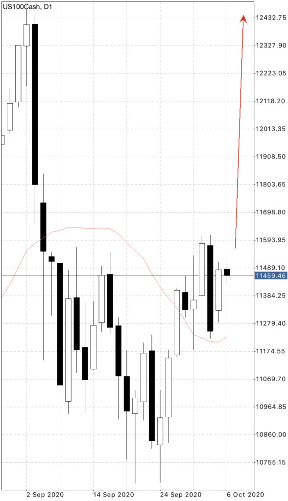 こちらはナスダックの日足チャートですが、何か形が見えるかと思います。