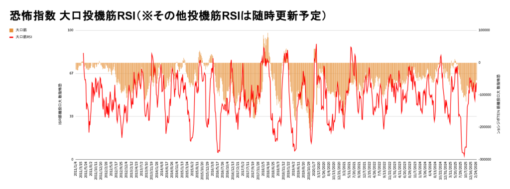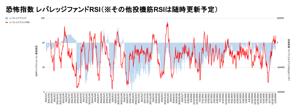 ※ブログで掲載している投機筋RSIはグラフの仕様上、33と67になっております。