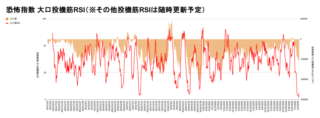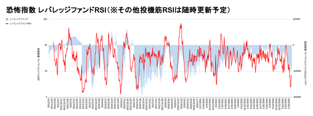 そしてこちらは毎週僕が更新している、恐怖指数の投機筋RSIになります。