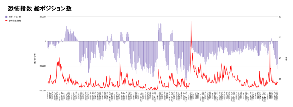 その反発と共に、恐怖指数の売りポジション量が解消されているのがわかります。
