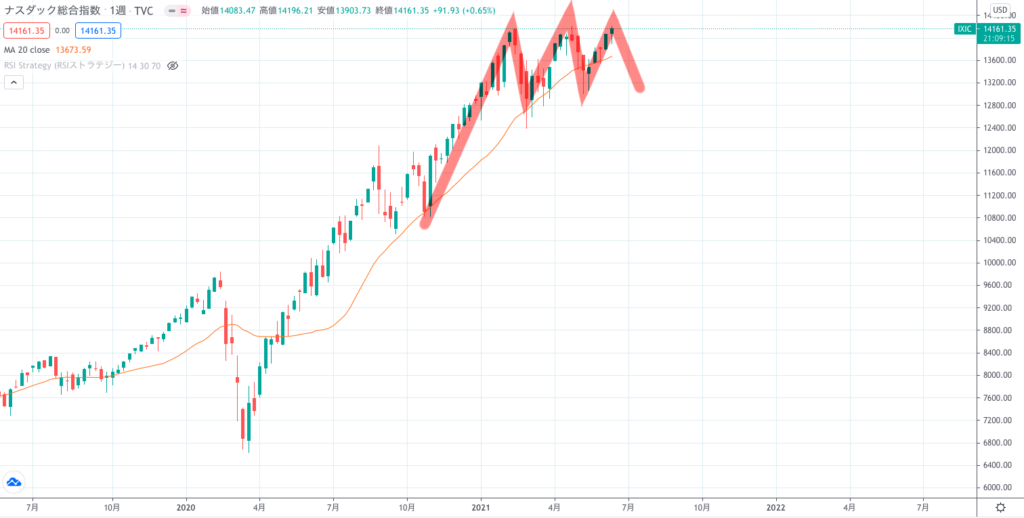 そうですね。これらの根拠がすべて揃っているので、ナスダックも下落する考えとして一貫性を保てます。