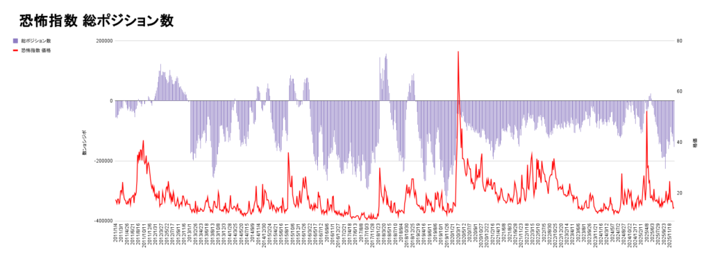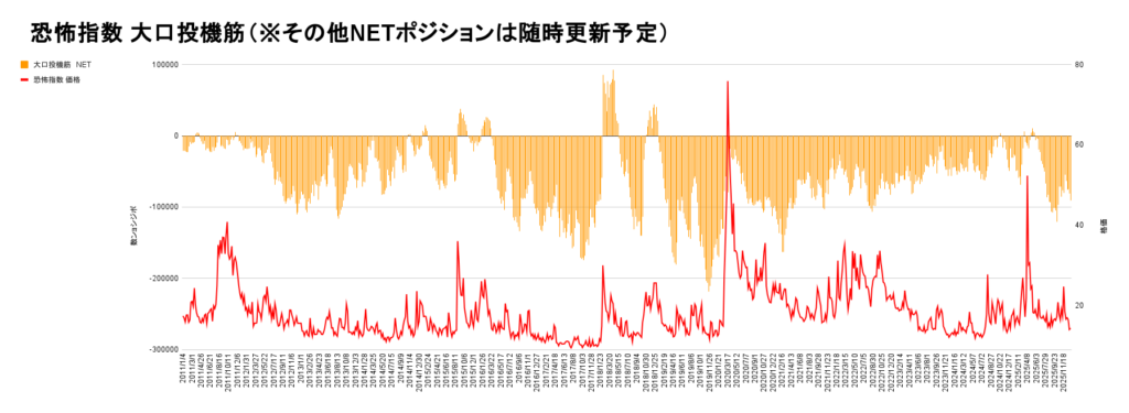 さらに恐怖指数の投機筋チャートも売りポジション量が順調に解消しており、過去の暴落パターンと同じになってきています。