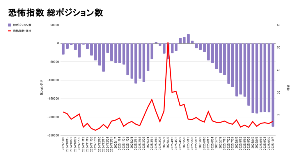 こちらは恐怖指数の投機筋チャートですが、順調に売りポジション量を解消しています。