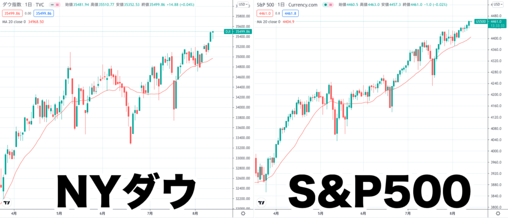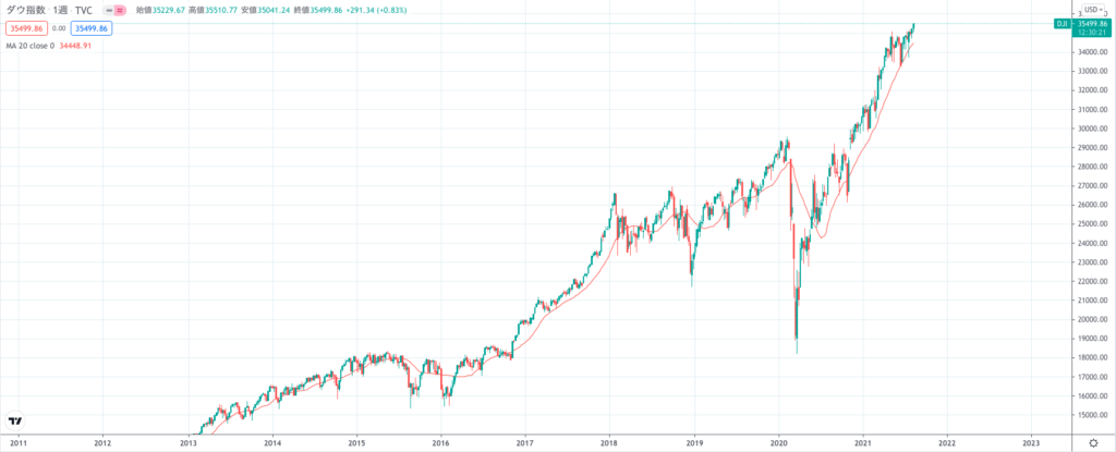 ニュースでも聞いたんですが、NYダウが連日最高値をまだまだ更新してるみたいですよね。