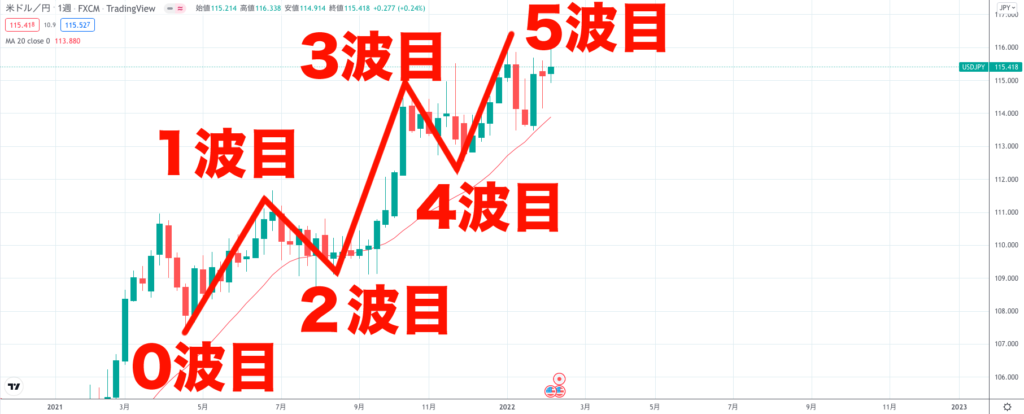さらにドル円はエリオット波動1波目と5波目が同じ長さで天井をつけて効いています。