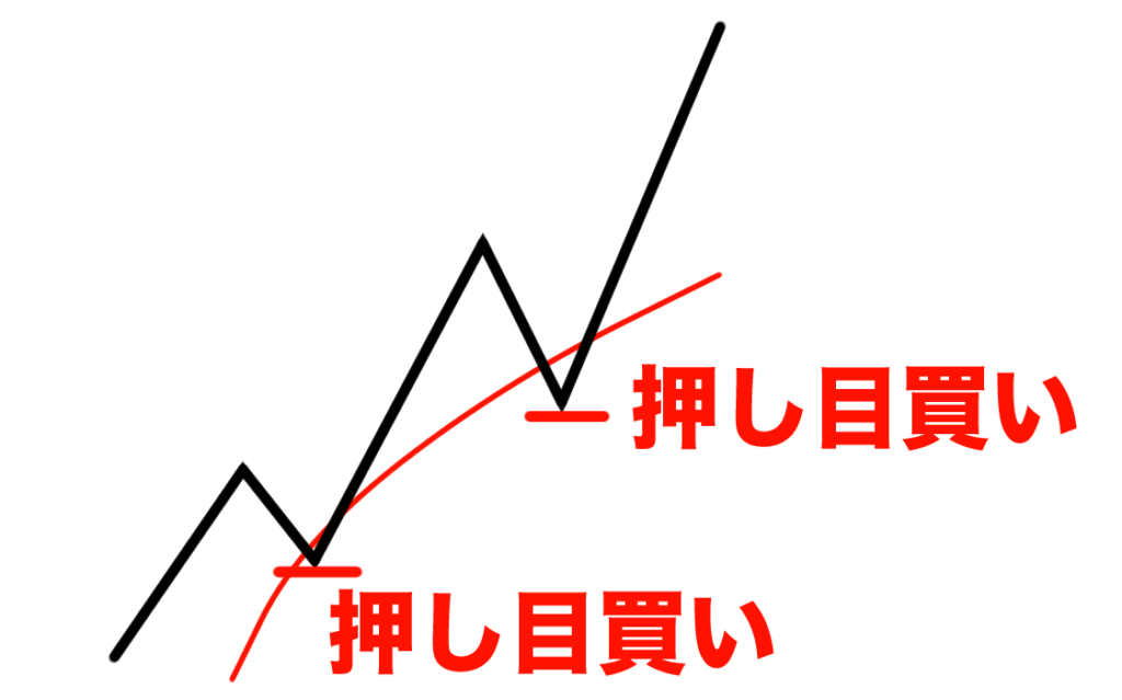 上昇トレンドのときは移動平均線も右肩上がりになっています。