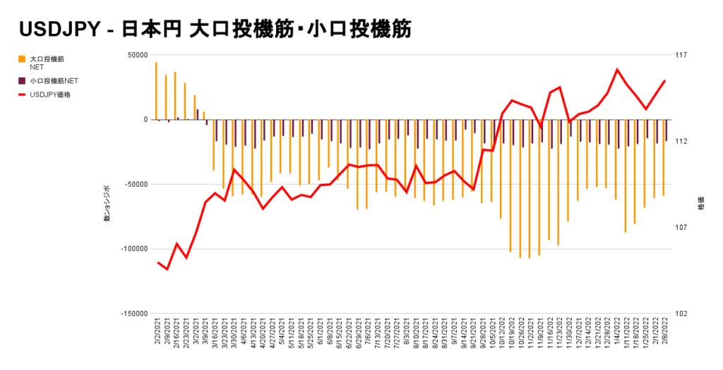 また相場を操る御三家に加え、小口投機筋のポジション量も掲載しています。