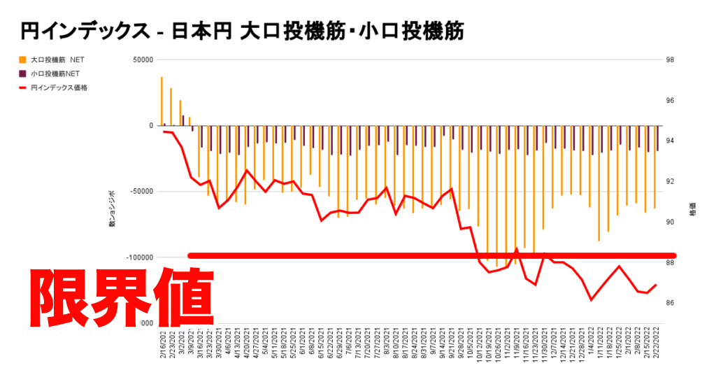 投機筋チャートの見方については、こちらの説明をご覧くださいませ。
