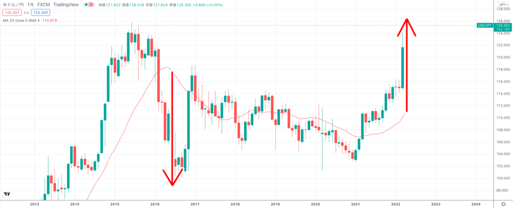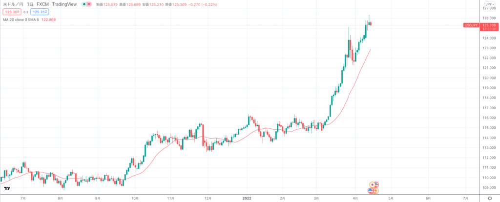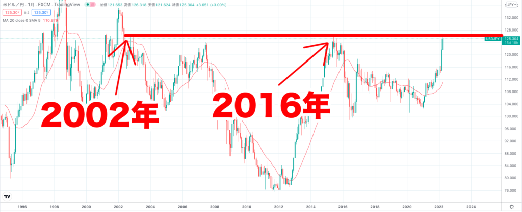 円安によりドル円が20年ぶりの高値を記録へ。