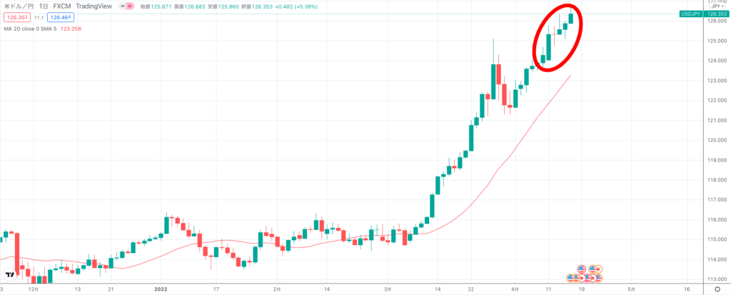 カナエさん、こんにちは。ドル円は126.6円台まで上昇し、強い円安となりました。