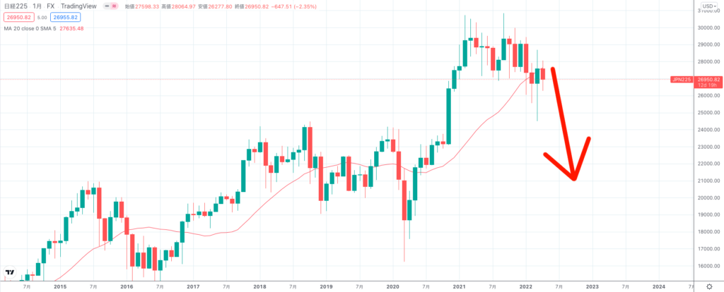 なのでドル円が大きく反発するタイミングで日経平均株価もより下落する可能性も考えています。