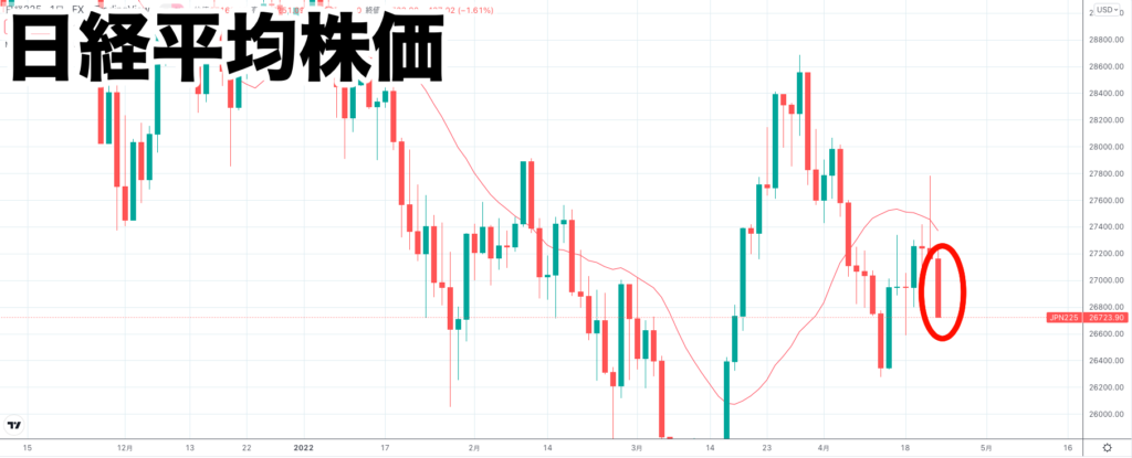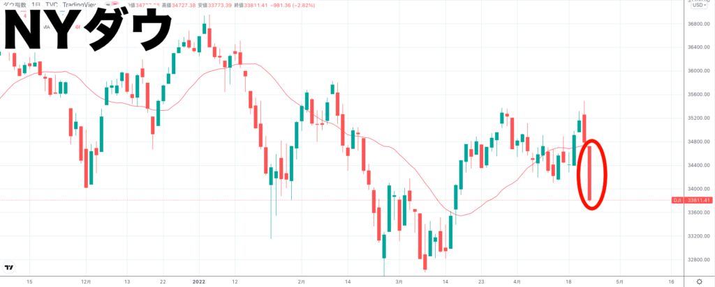 ユウタさん、こんにちは。4月22日金曜日はNYダウは1,000ドル近く下落し、日経平均株価も500円近く下落となりました。