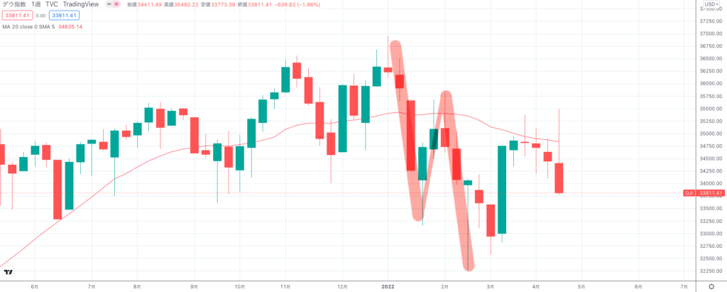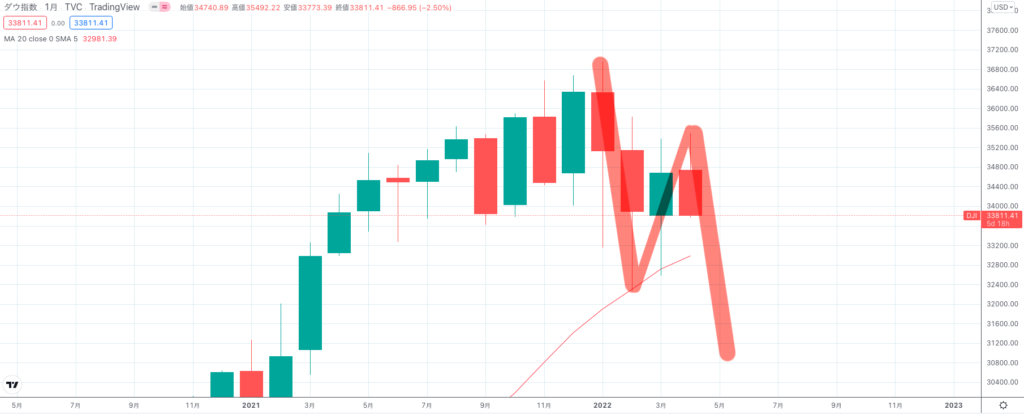 NYダウが1,000ドル下落か。今後3万ドルを割る可能性あり。