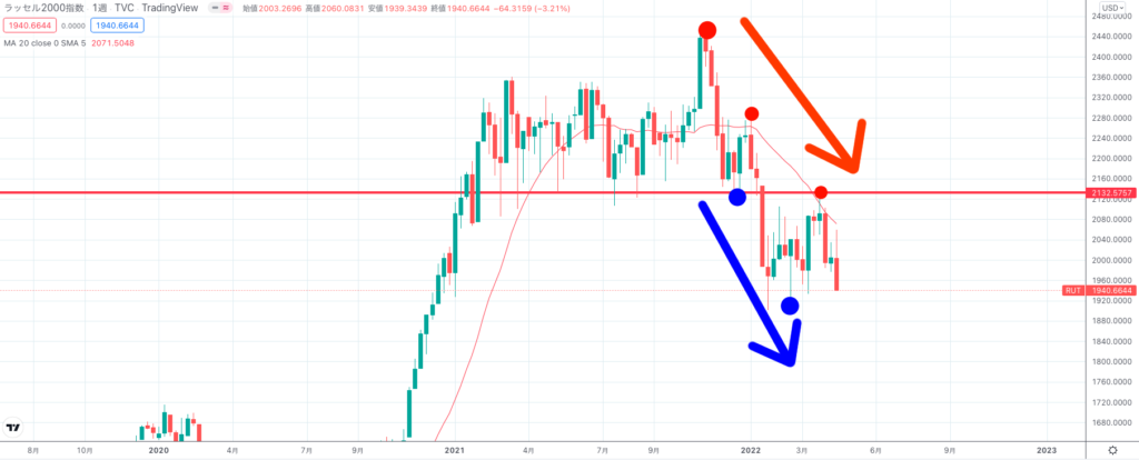 なのでラッセル2000と連動してどこまで株価が下げていくかに注目していきます。